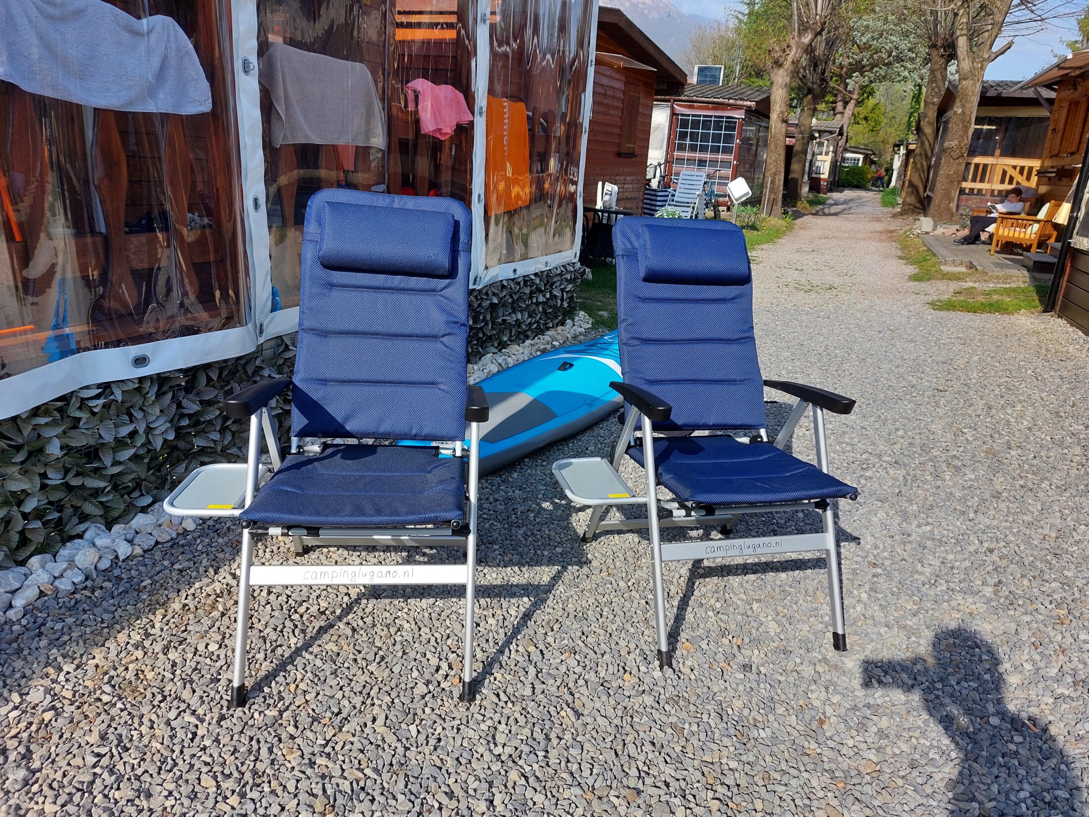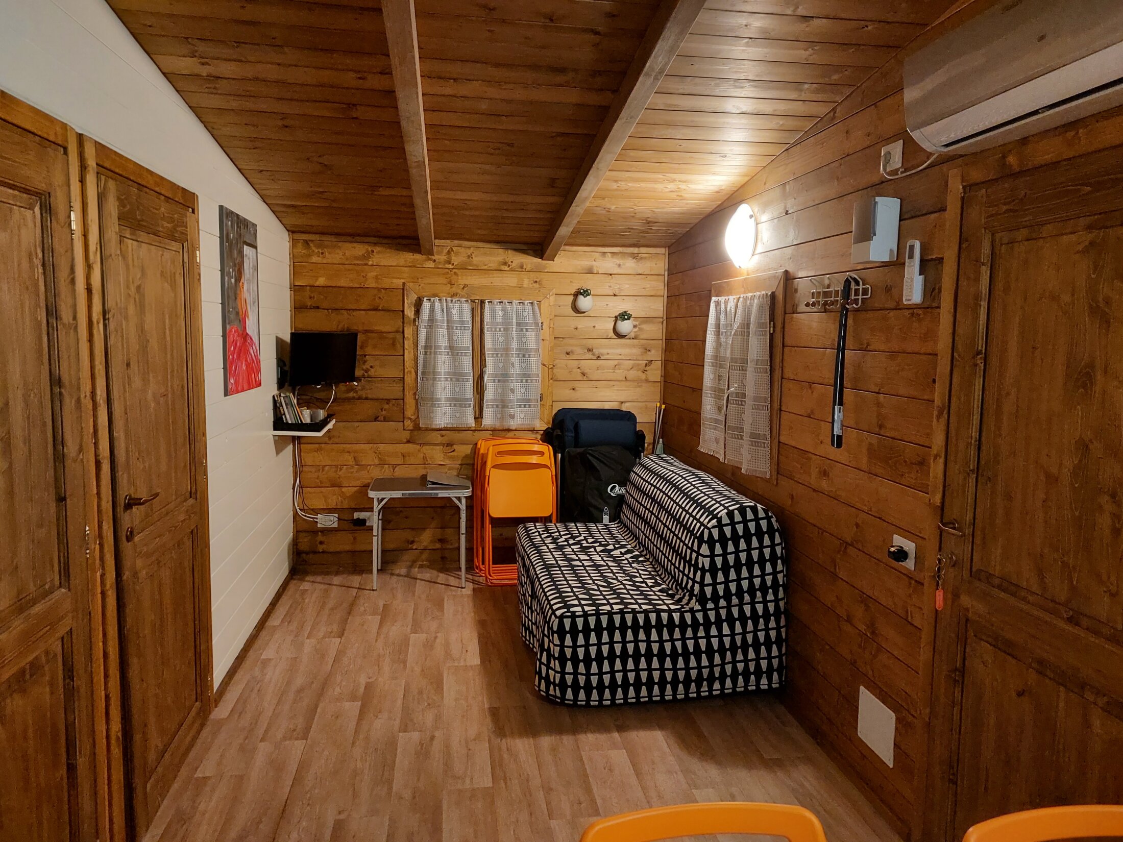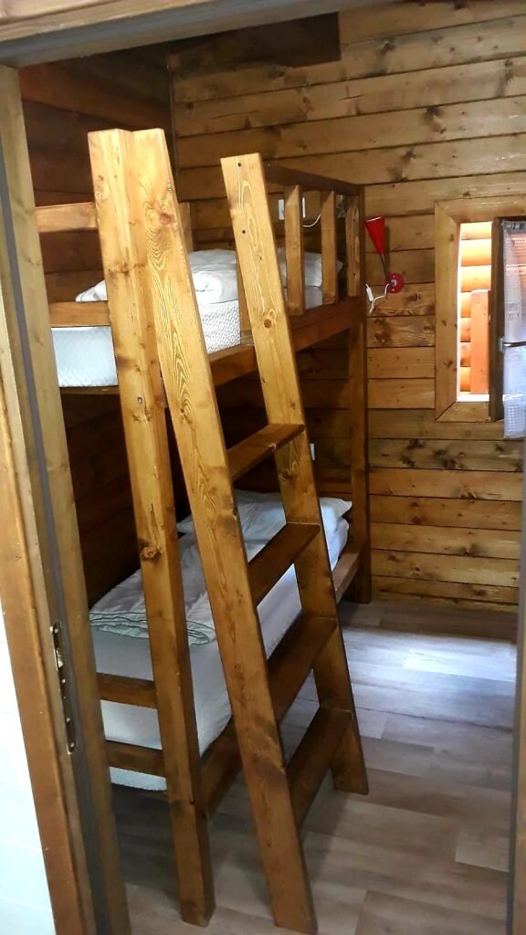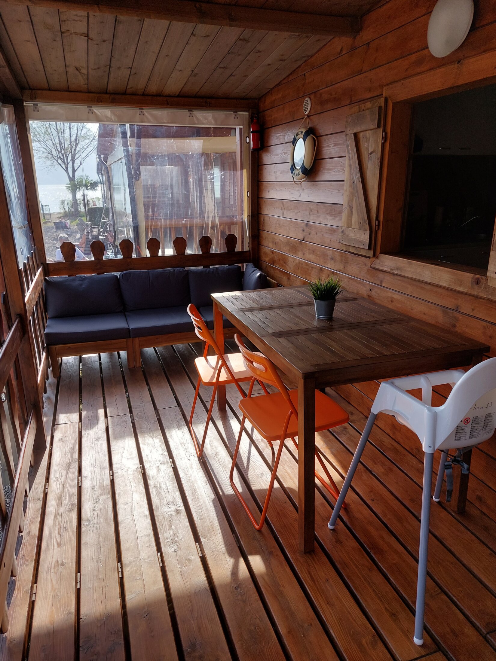 We hebben 2 chalets naast elkaar: Berlino 7 voor max. 5 personen met 2 slaapkamers, en Berlino 13 voor max. 6 personen met 3 slaapkamers. De indeling van de vakantiechalet is als volgt: · Woonkamer met open keuken; · Eethoek met eettafel en stoelen; · Bank, stoel, tv met satellietontvangst voor o.a. de Nederlandse zenders tot midden September; · De betegelde keuken is voorzien van een 4-pits gaskookplaat, koelkast met vriesvak, magnetron, Nespresso en een zeer complete keukeninventaris; · Ouderslaapkamer met 2-pers. bed en kasten, 2 slaapkamers met stapelbedden en kasten; · Bed ouderslaapkamer is voorzien van 2-pers. matras en 1 persoons dekbedden en kussens; · Slaapkamers met stapelbedden zijn voorzien van 1-pers. matrassen en 1 persoons dekbedden en kussens; · Een badkamer met douchecabine, toilet en wastafel en tweede badkamer met toilet en wastafel; · Overdekte houten veranda, voorzien van doorzichtig in gedeeltes afsluitbare luifel, verstelbare tuinstoelen en tafel; · Kinderbedje met dik matras en kinderstoel. · The chalets are equipped with air conditioning, which keeps it pleasant inside in the summer and guarantees your night's sleep.