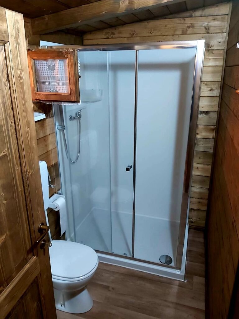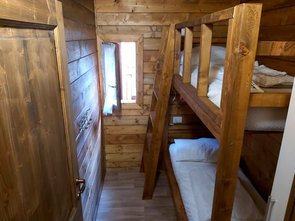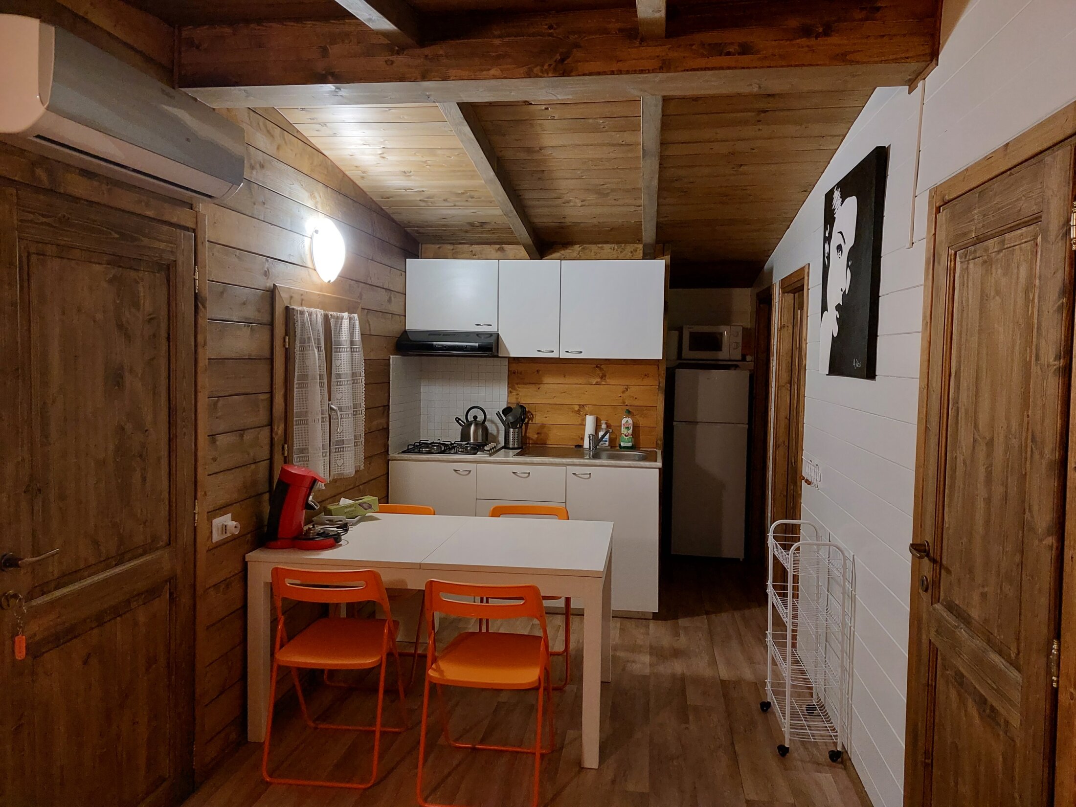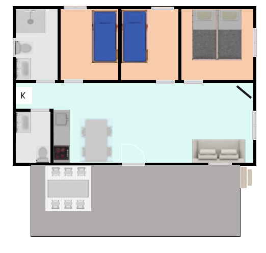 We hebben 2 chalets naast elkaar: Berlino 7 voor max. 5 personen met 2 slaapkamers, en Berlino 13 voor max. 6 personen met 3 slaapkamers. De indeling van de vakantiechalet is als volgt: · Woonkamer met open keuken; · Eethoek met eettafel en stoelen; · Bank, stoel, tv met satellietontvangst voor o.a. de Nederlandse zenders tot midden September; · De betegelde keuken is voorzien van een 4-pits gaskookplaat, koelkast met vriesvak, magnetron, Nespresso en een zeer complete keukeninventaris; · Ouderslaapkamer met 2-pers. bed en kasten, 2 slaapkamers met stapelbedden en kasten; · Bed ouderslaapkamer is voorzien van 2-pers. matras en 1 persoons dekbedden en kussens; · Slaapkamers met stapelbedden zijn voorzien van 1-pers. matrassen en 1 persoons dekbedden en kussens; · Een badkamer met douchecabine, toilet en wastafel en tweede badkamer met toilet en wastafel; · Overdekte houten veranda, voorzien van doorzichtig in gedeeltes afsluitbare luifel, verstelbare tuinstoelen en tafel; · Kinderbedje met dik matras en kinderstoel. · The chalets are equipped with air conditioning, which keeps it pleasant inside in the summer and guarantees your night's sleep.